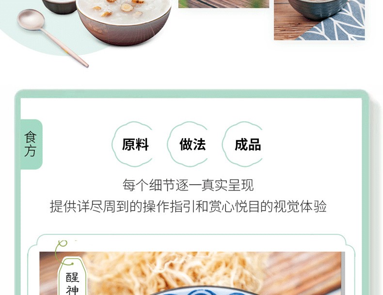 專業攝影團隊歷時90天實景拍攝,從上萬張高清圖中精選500幅精品彩圖。食方的原料、做法、成品,每個細節逐一真實呈現,提供詳盡周到的操作指引和賞心悅目的視覺體驗。