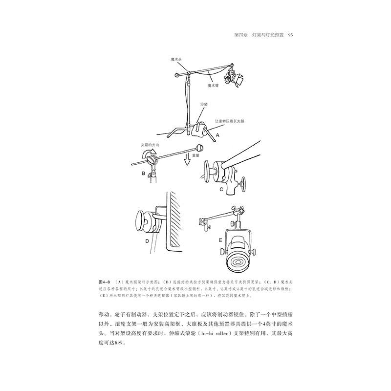 258幅精選燈位圖、工具示意圖、操作示意圖、照明效果圖、片場工作照、器材實物圖,實用的光度數據、燈具規格、電工表格,為片場操作提供直觀參考。