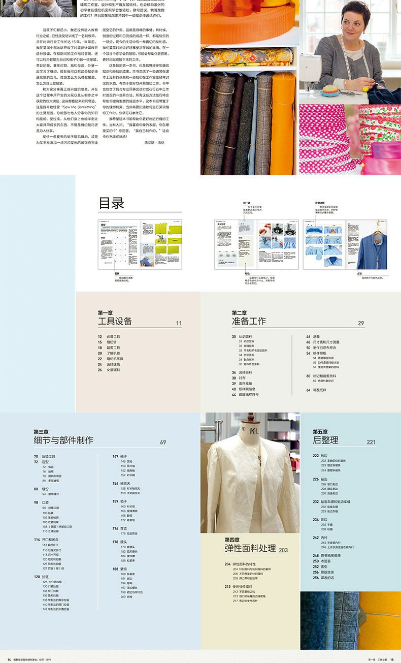 細節的製作。全書由五部分構成——工具設備、準備工作、部件與細節製作、彈性面料處理、後整理。