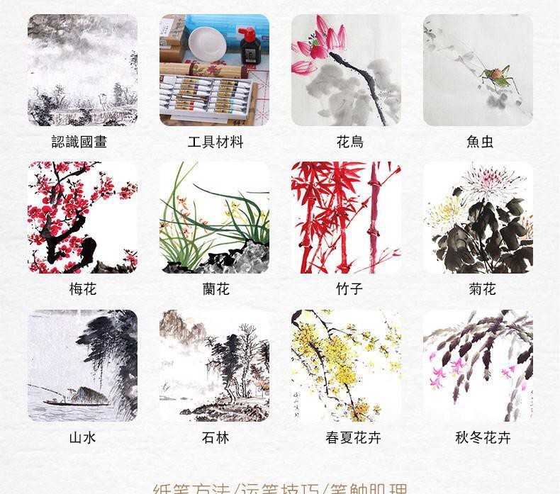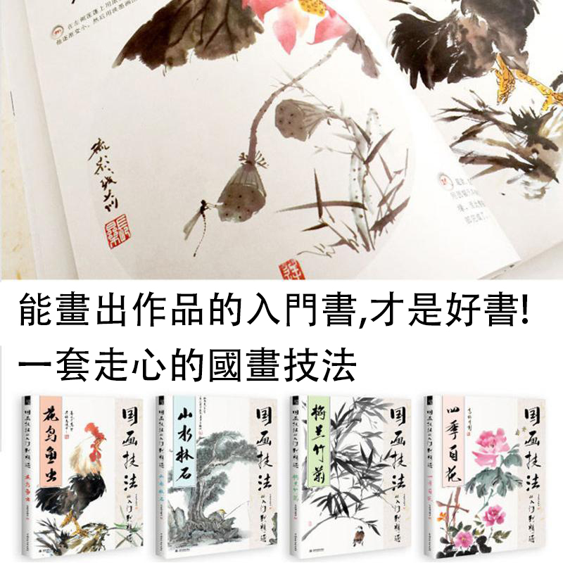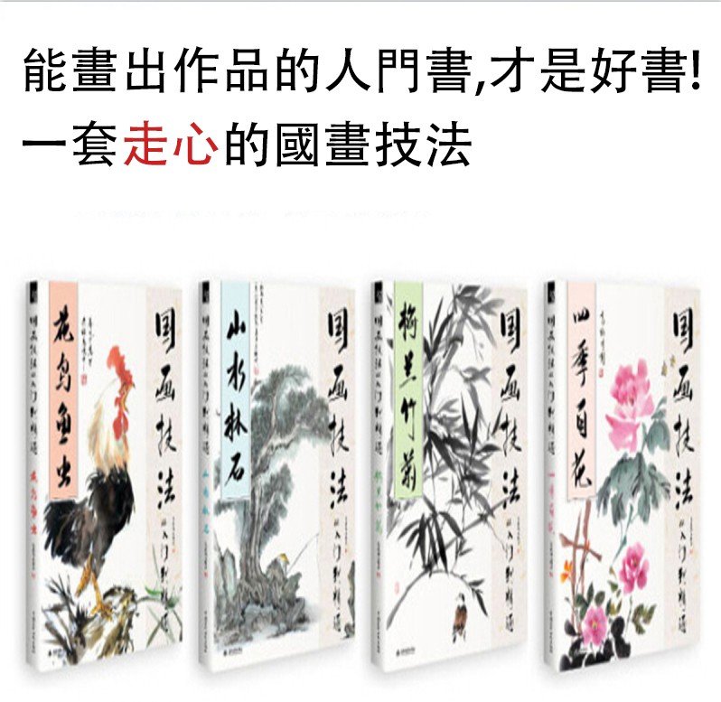 【國畫技法教程全套4冊】從入門到精通,十大題材、兩大領域,分步講解,輕鬆掌握花鳥魚虫/梅蘭竹菊/山水石林/四季百花繪畫技巧