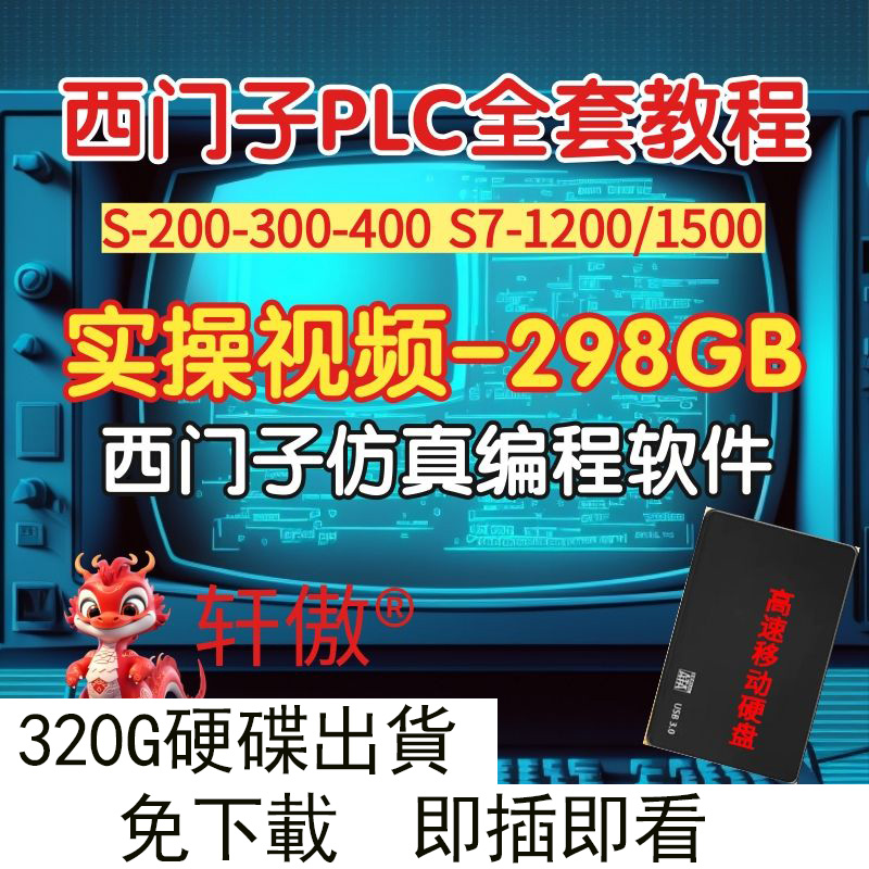 西門子PLC全套視頻教程 S7-200/300 博途1200/1500 WINCC觸摸屏 仿真編程軟件全套視頻課程(320G 硬碟出貨 免下載 即插即看)