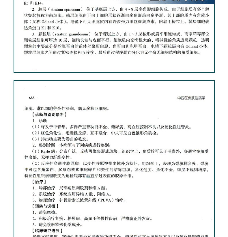 《中西醫皮膚性病學》是一本大型專業型著作,“十三五”國家重點出版物出版規劃項目。該書組織全國中西醫皮膚科界100 餘名專家共同編寫,歷時2 年。本專著200多萬字,其中含病種近600 種,涵蓋了皮膚科臨床常見疾病、部分少見病、少數罕見疾病。本專著有幾個突出優勢:①內容豐富,有傳承、有創新,亦有突破。 ②圖文並茂,便於讀者一目了然認識疾病。 ③中西並重,從中醫之“辨證”談到西醫之“辨病”,以“病證結合”的診療思路,將中醫與西醫融匯貫通,促進中西醫互相學習。本書的出版,為提高中醫、西醫、中西醫結合三支醫療力量的臨床思維能力和實踐水平,提高我國皮膚性病學科的學術發展水平和國際醫療核心競爭力做出了重要貢獻。