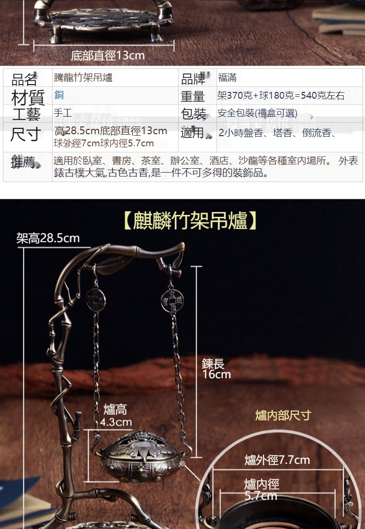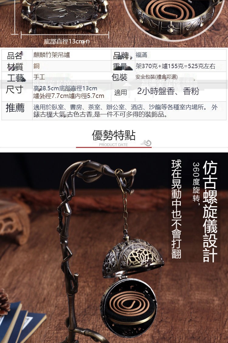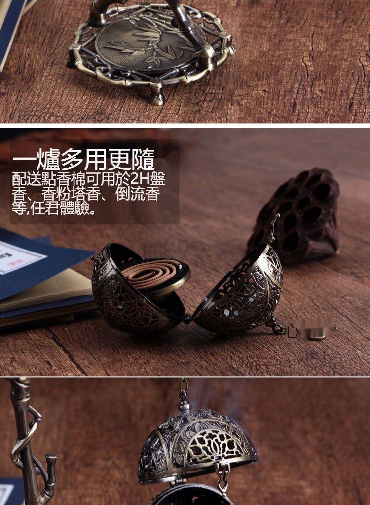 純銅仿古倒流香爐吊掛香薰檀香盤香爐