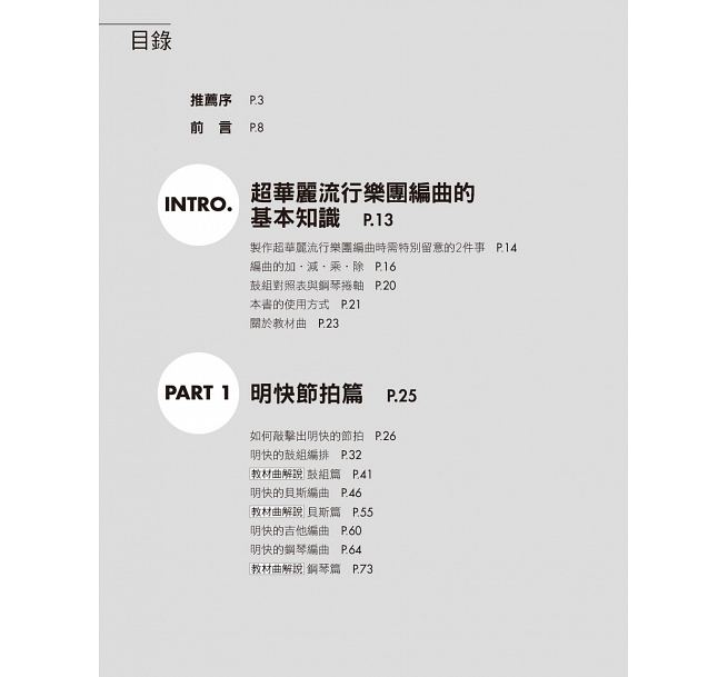 -原本得透過長期進行樂曲分析才能學到的方法,在這本書中一次就能學到。尤其是PART2有關「聚焦度」的掌握方法非常好懂。適合已有作曲經驗、開始覺得需要「編曲」的人。
