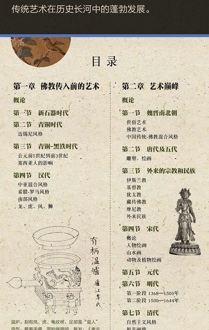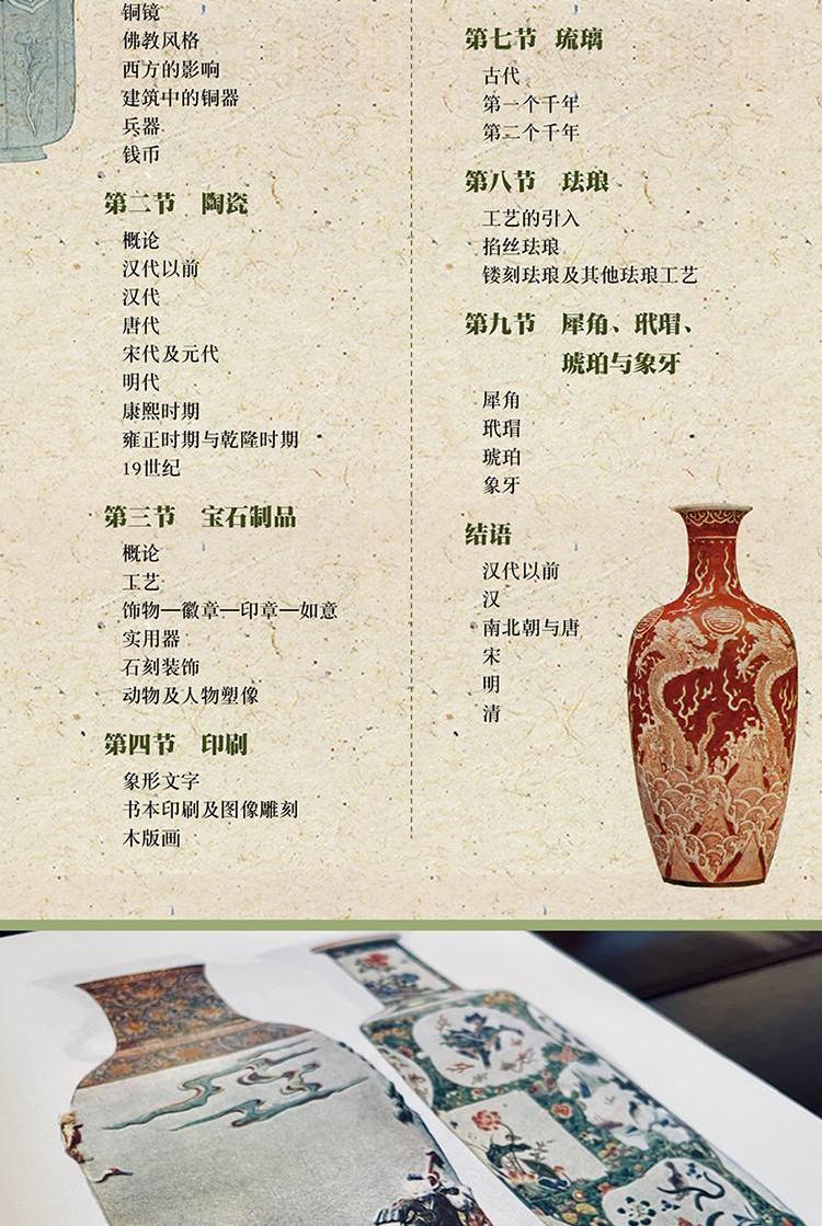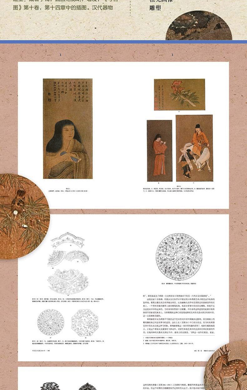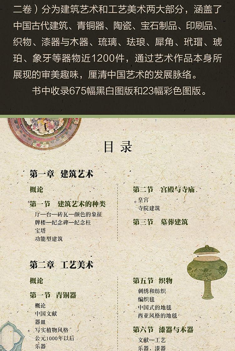 書中收錄675幅黑白圖版和23幅彩色圖版,其中不乏藏於巴黎盧浮宮、倫敦大英博物館、紐約大都會博物館等地的文物原件的圖片及在中國實地拍攝的照片。每幅圖片均詳述器物名稱、尺寸、收藏信息等。本書是研究中國傳統藝術的珍貴史料,可謂“中國藝術大百科”。