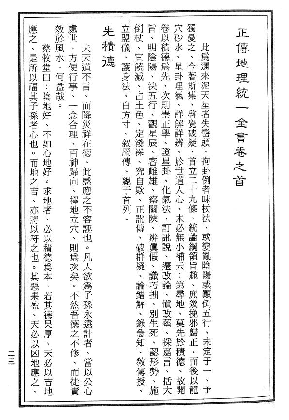 時至今日,科學昌明,過去所不能理解之事,現今已能逐漸瞭解.若今之學者,能先盡自然科學之基礎,融通人天哲學之理念,掘發古學之長,闡揚今學之妙,則地理堪輿之學,亦當大有可觀也.