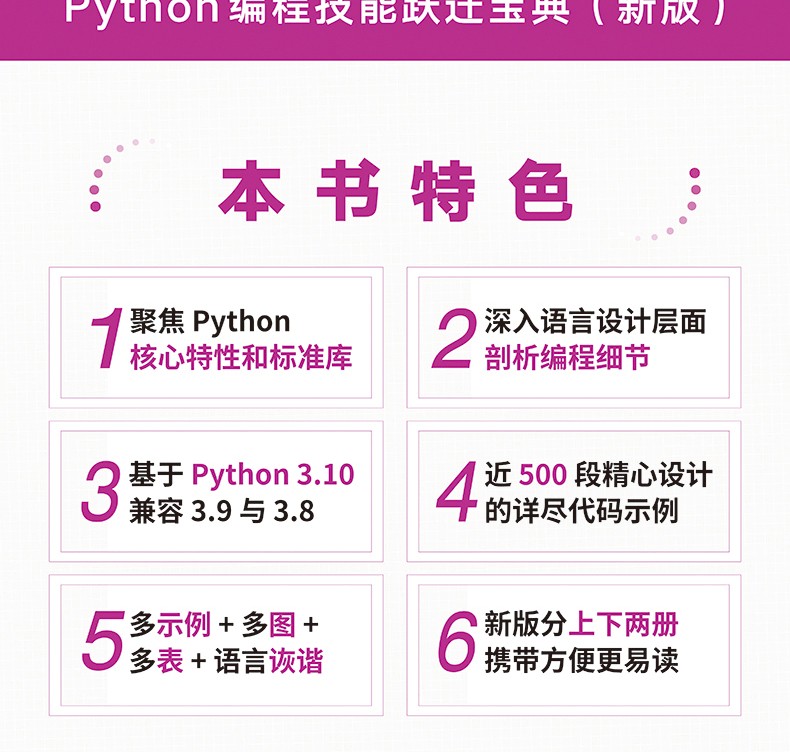 一、領域好書 【領域好書】Python 進階指南,精通 Python 繞不開的推薦作品 【好評如潮】Amazon 4.7 星評,豆瓣評分 9.4,近 8 萬讀者學習 【作者資深】25 年一線研發經驗,PSF(Python軟件基金會)成員 二、內容精良 【知識聚焦】專注 Python 核心特性和標準庫,助你掌握語言底層邏輯 【通俗易讀】近 500 段代碼示例 + 多圖多表,文筆詼諧,語言流暢 【Pythonic】寫簡潔、流暢、地道的 Python 代碼,飆升編程效率 三、新版特色 【優化升級】內容......