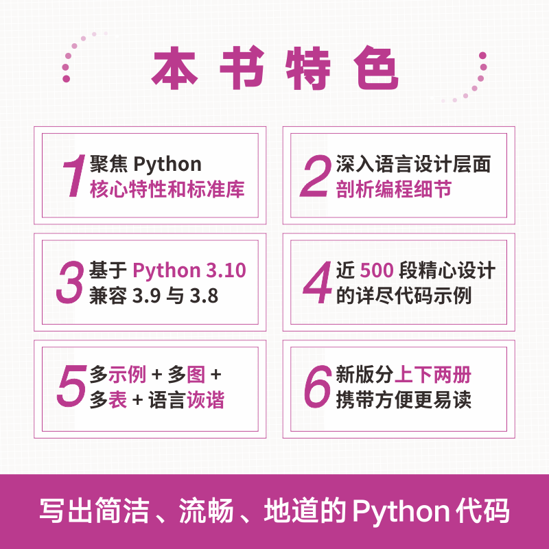 本書是Python領域備受推崇的經典作品,致力於幫助Python開發人員挖掘這門語言及相關程序庫的優秀特性,寫出簡潔、流暢、易讀、易維護,並且地道的Python代碼。本書著重講解Python語言所獨有的功能,助你成功進階為Python高手。第2版與時俱進,教你跳出舊有經驗,探索並運用地道的Python3功能。第2版主體內容分為五部分:數據結構、函數即對象、類和協議、控制流、元編程。每一部分都精彩紛呈,通過豐富的示例和細緻的講解,教你充分利用Python特性,寫出有效且現代的Python3代碼。對於所有想提升Python開發技能的讀者,本書不容錯過。