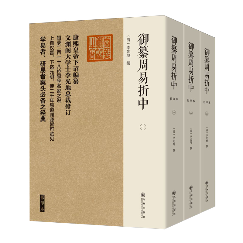 《御纂周易折中》乃「御纂七經」之第一部,成書於清康熙五十四年。本書由康熙皇帝下詔編纂,文淵閣大學士李光地總裁修訂,共輯錄二百一十八位易學名家之說,上自漢晉,下止元明,使二千年易道淵源皆可覽見。作為清代官方易學的集大成之作,本書自問世後,便作為士子讀易的欽定教科書而頒賜各級學校,流傳甚廣。