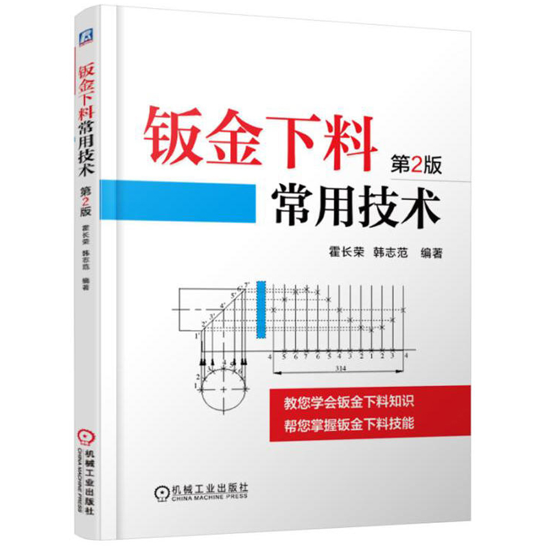 本書共分六章,對鈑金下料常用技術進行了詳細敘述。第一章是對下料作圖中經常遇到的幾何作圖法進行了介紹;第二章對機械製圖相關知識進行了敘述,特別是對三視圖的形成、三視圖的投影規律、線段實長求法及點、線、面、體投影等內容進行了介紹。第三章對看圖下料相關知識,如平行線法下料、放射線法下料和三角形法下料等進行了介紹;第四章對劃線標記和加工餘量、咬縫加工餘量及排料、剪切與彎曲加工等下料加工知識進行了介紹。第五章介紹了實際生產中經常遇到的型鋼下料的相關知識。第六章介紹了計算機下料的相關知識。