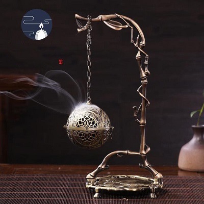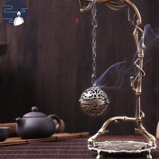 純銅古風倒流熏香爐鏤空懸掛式檀沉香吊爐
