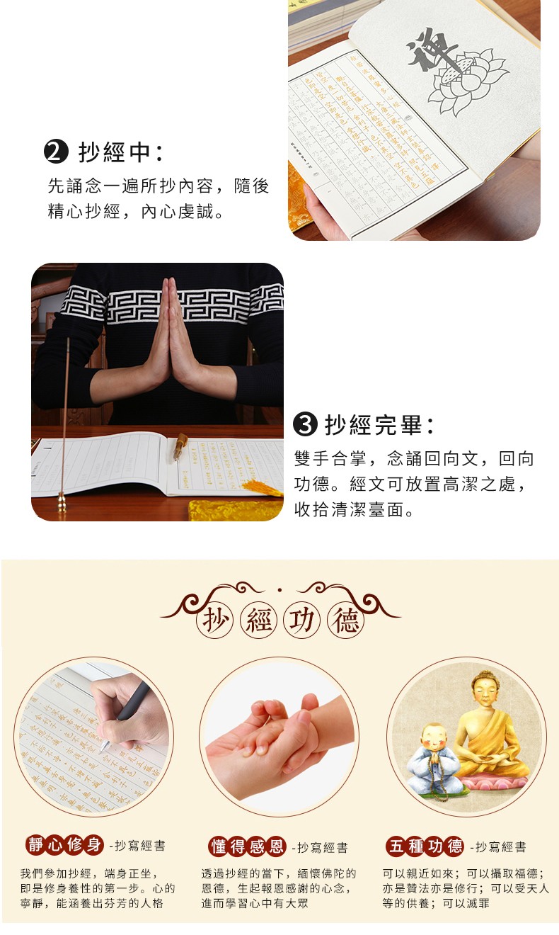 手抄佛經8本 每天抄寫經文,積德行善,結佛緣,旺運勢!比吃齋還要夯100倍!堅持「手抄經」功德無量! (贈送抄經筆,筆芯*40,筆袋,經書袋)
