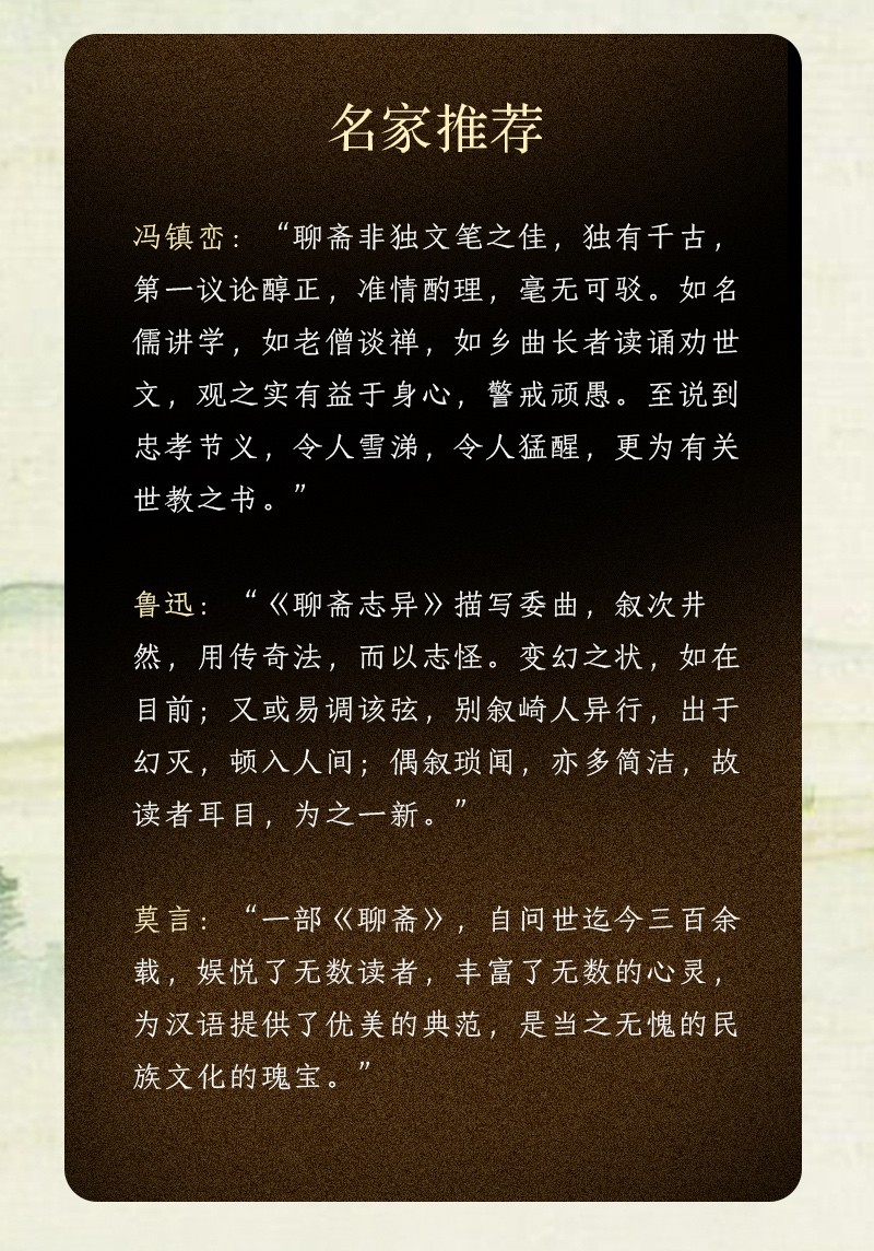 莫言:一部《聊齋》,自問世迄今三百餘載,娛悅了無數讀者,豐富了無數的心靈,為漢語提供了優美的典範,是當之無愧的民族文化的瑰寶。