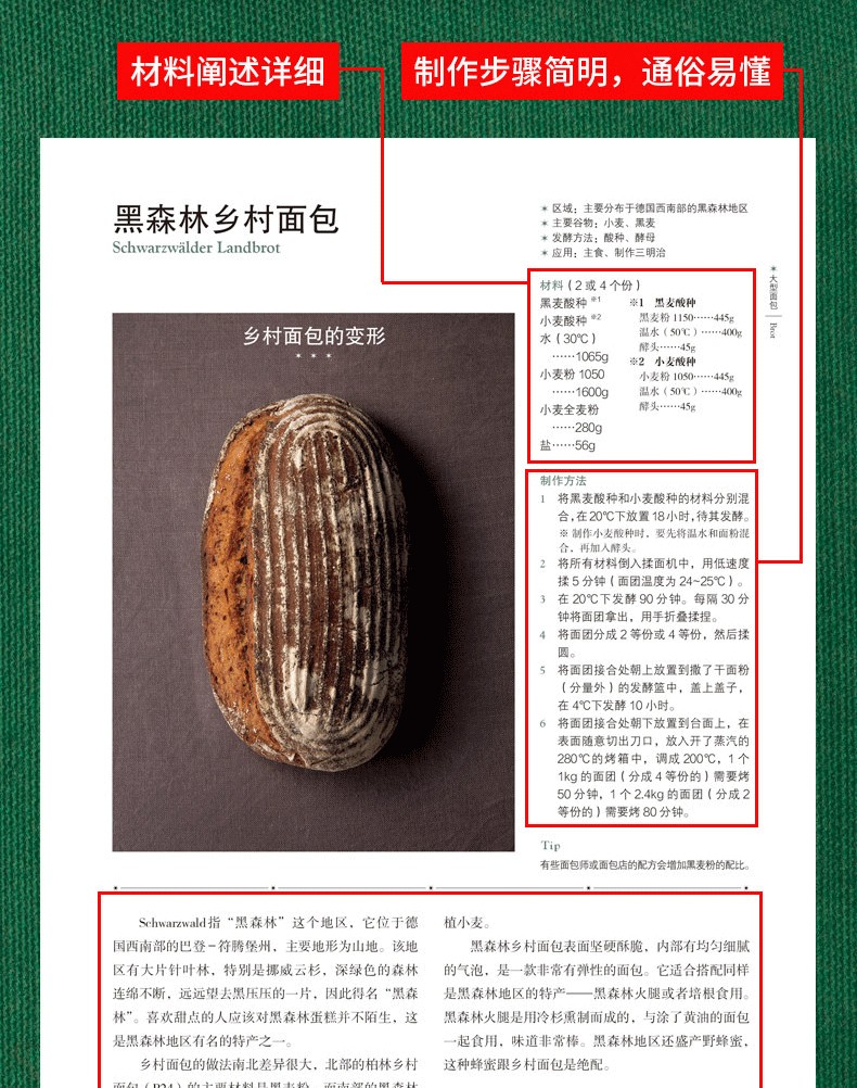 曾有人稱德國麵包是世界“麵包”,德國大大小小的麵包加起來有兩三千種,作者為了能夠更為立體地呈現德國麵包文化之豐富,從中精選出4大類近百款能夠代表德國麵包靈魂的99款麵包。材料配比詳細、製作步驟清晰,讓您掌握德國傳統麵包的獨特做法。書中的麵包配方均為德國傳統麵包製作配方,極盡所能原汁原味呈現德國麵包製作過程。跟隨本書,從初級階段的麵粉發酵開始,系統地了解和學習烘焙麵包的知識,製作出正宗的美味麵包。除此之外,專欄講述不同節慶風俗時與麵包相關的故事,讓您可以在製作麵包之餘,獲得美味享受之外的新知。