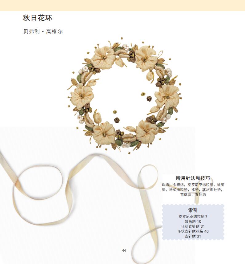 2.緞帶繡相關知識的完全指南,包括知識、技法、具體作品製作。