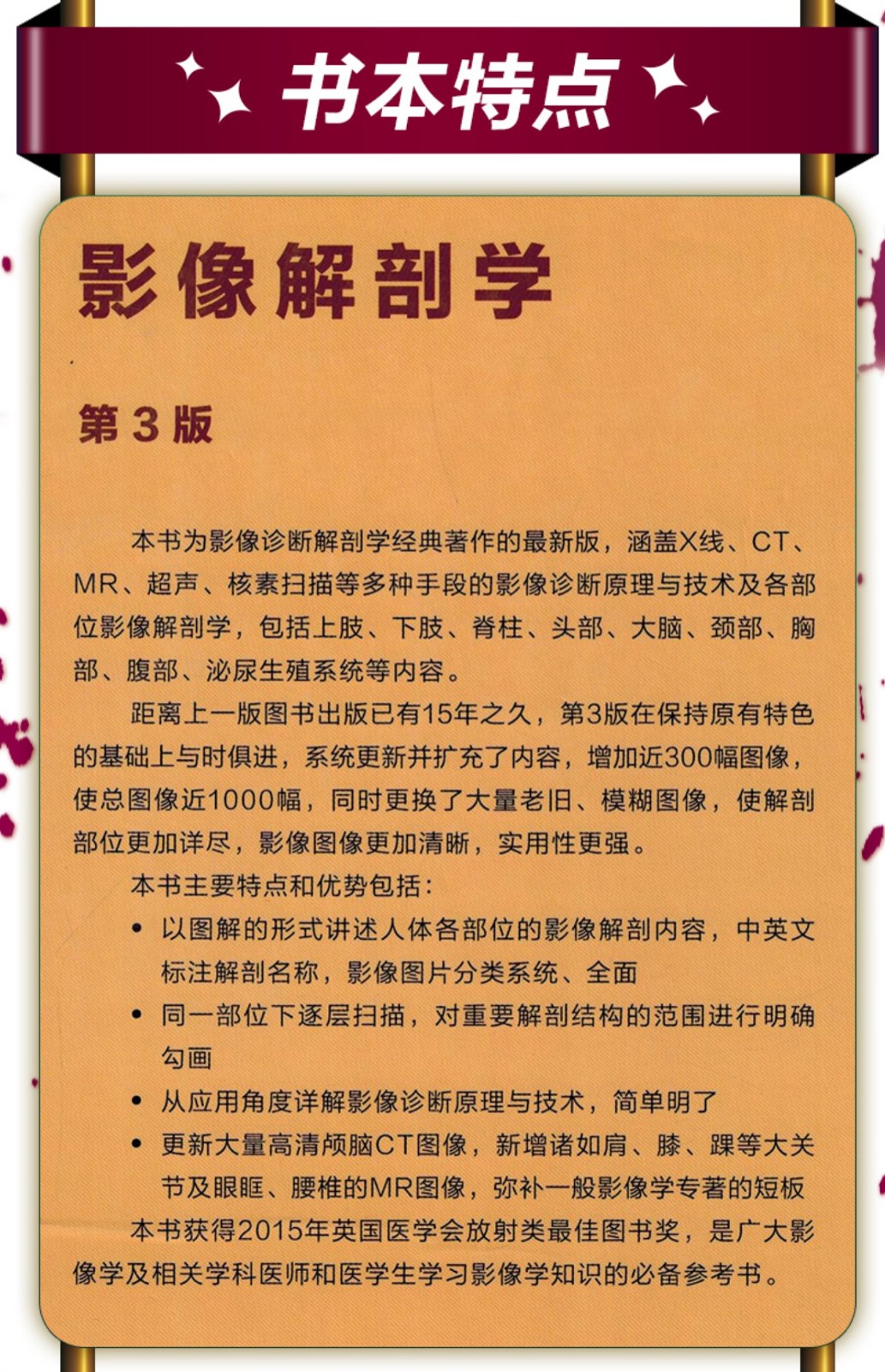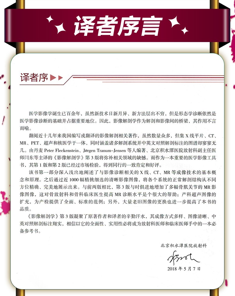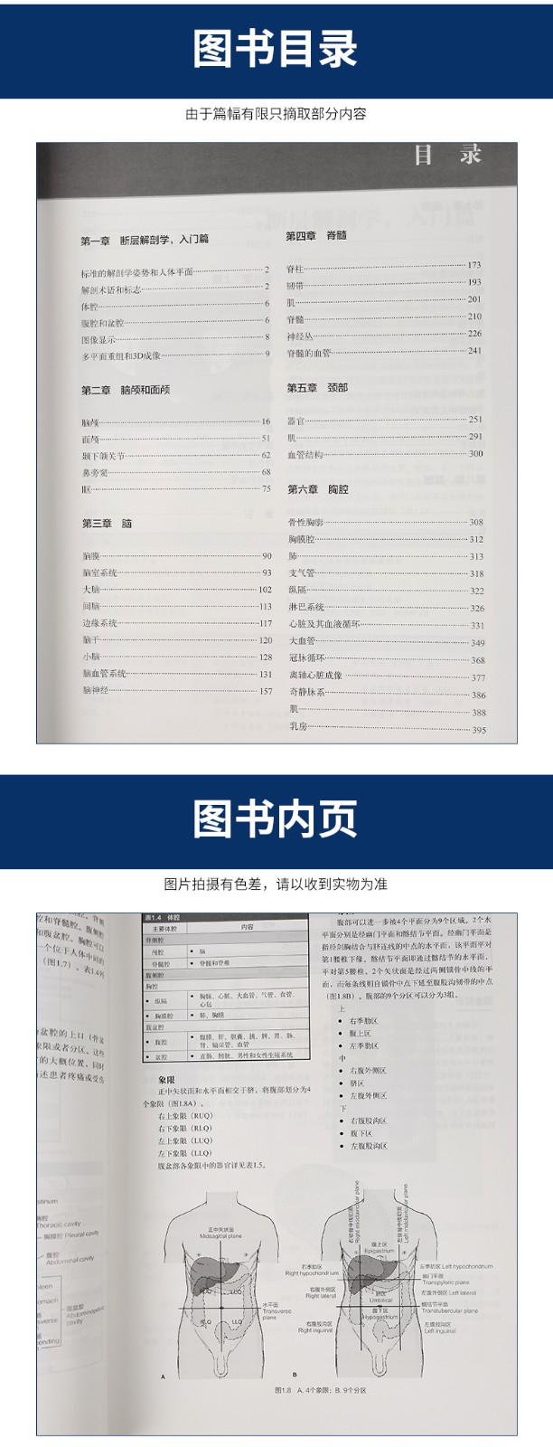 本書共10章,第1章簡要介紹解剖平面、標誌、術語、分區、多平面重組和3D成像;第2-10章重點介紹腦顱、面顱,腦,脊髓,頸,胸腔,腹部,盆部,上肢,下肢各個部分每個解剖斷面的CT、MRI、3D圖像、血管圖像,以及對應的解剖圖和線條圖,同時對於常見解剖結構配有必要的文字描述,幫助大家在學習CT和MRI過程中更輕鬆、快速的掌握閱片基礎。