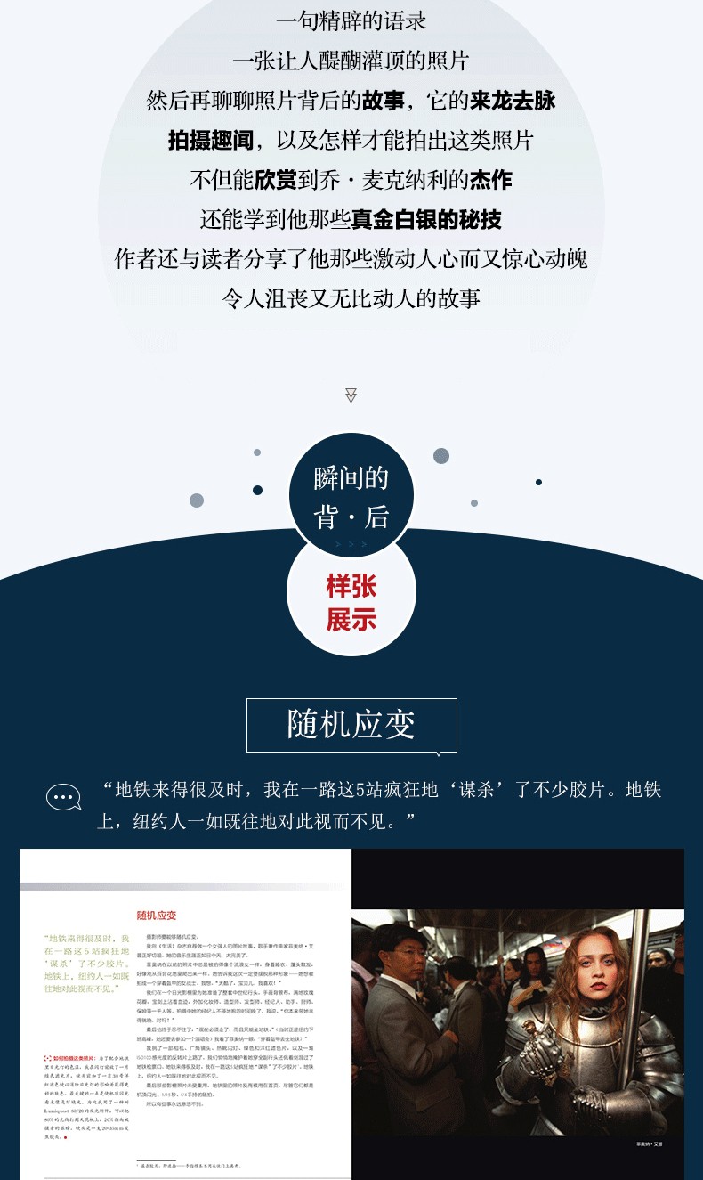 本書誕生於“百名對攝影*具影響力的人”“鏡頭背後的傳奇人物”喬?麥克納利在一次數碼攝影培訓班的壓軸報告。