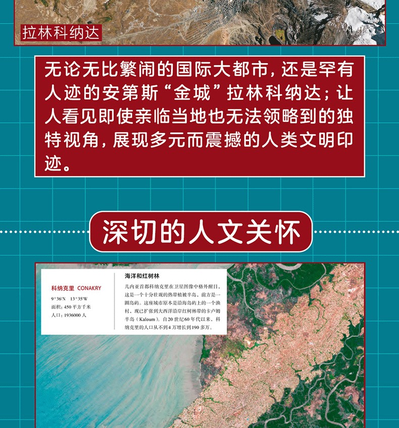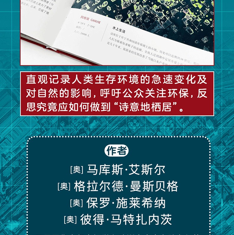 這本大開本的衛星圖集顯示了人類活動對環境造成的影響,聚焦於人類生存空間中那些令人著迷的細節,並期望以這種直觀的方式讓公眾在意識到自身改變自然的能力後,也相應地承擔起對未來應負的責任。