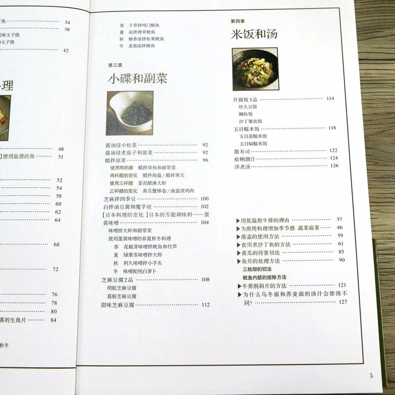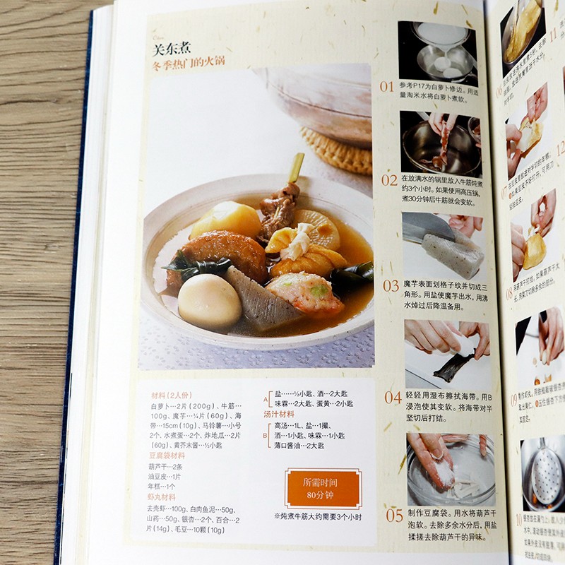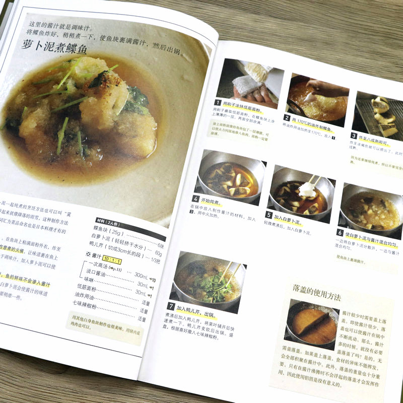 本書分為煎烤、燉煮、小碟與副菜與米飯和湯4個章節,介紹了日式料理中具有代表性的73款料理,用一步一圖的視頻教學模式詳細講解製作方法,包含我們熟知的日本料理,如照燒、烤魚、玉子燒、築前煮、壽司飯、日式涼拌菜等。作者在本書內容設計上非常用心,從日本料理基本的高湯製作和用法、燜米飯的方法、日式料理調味的基本原則開始講起,使初學者也能很快抓住日本料理的精髓,每款料理都有其來歷、特色、關鍵步驟的詳細講解和多年經驗分享,內容豐富實用,是想要學習日料和精進技術的讀者可遇不可求的指導書籍。