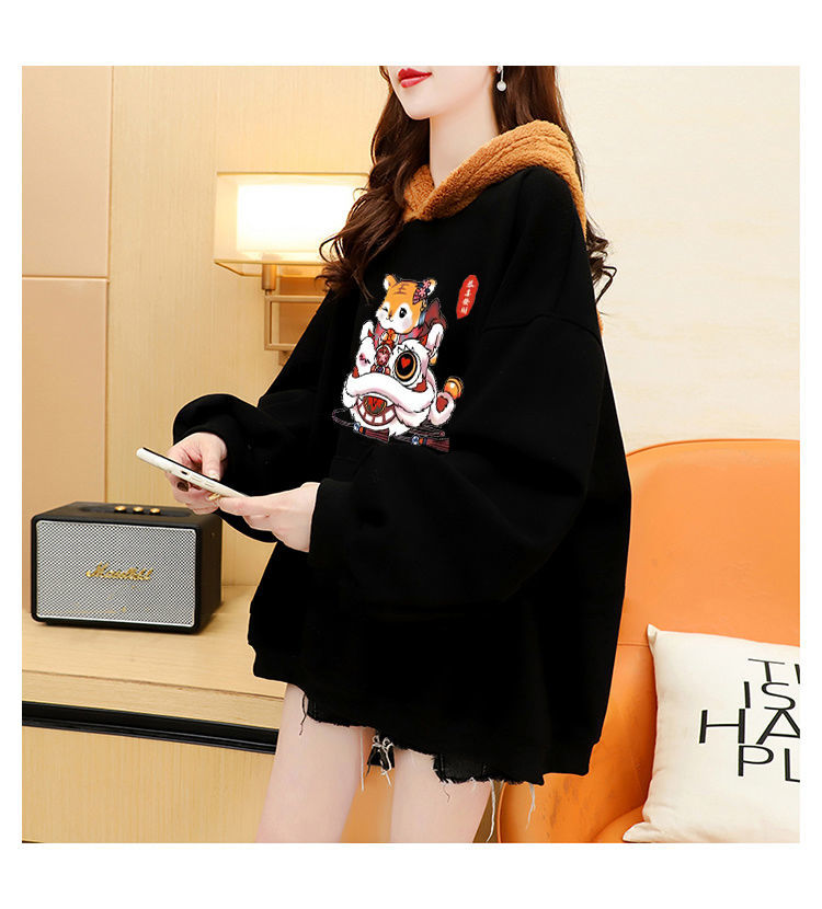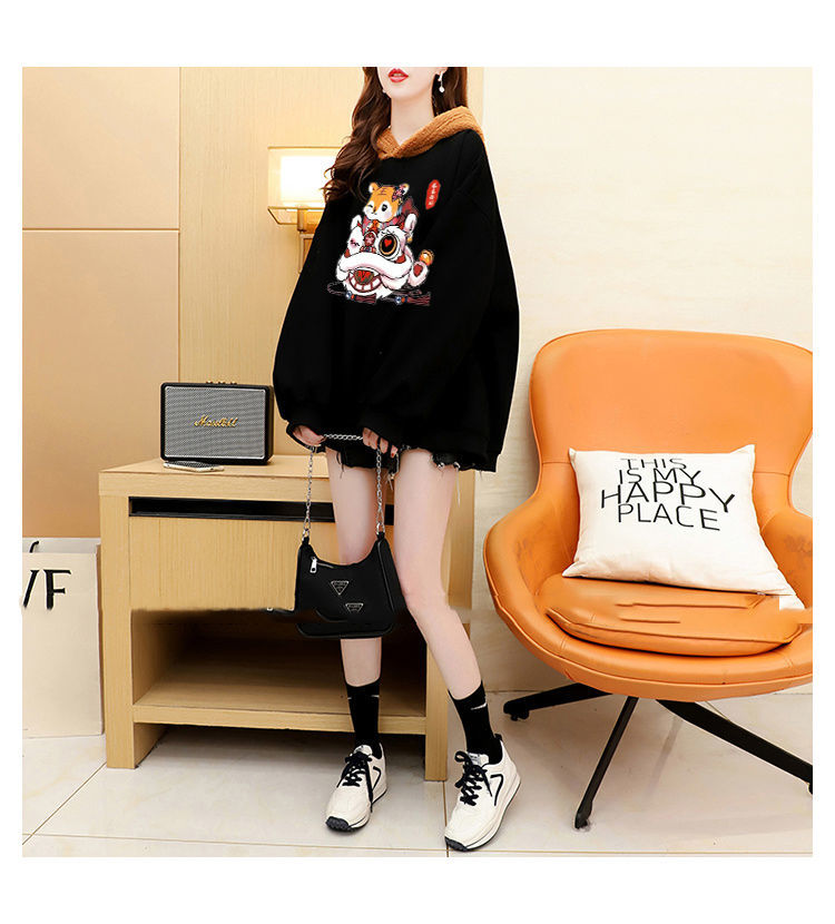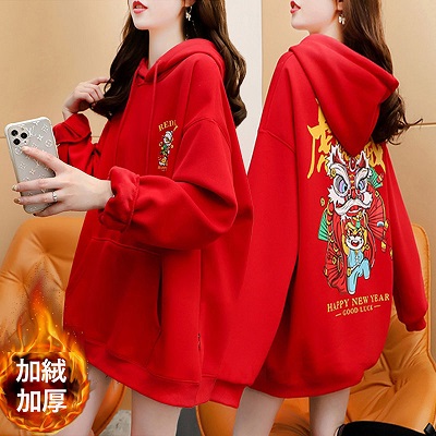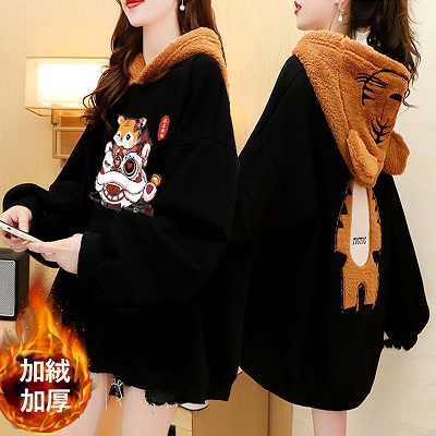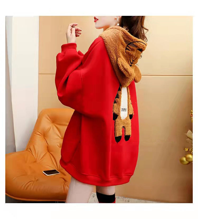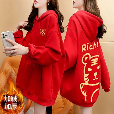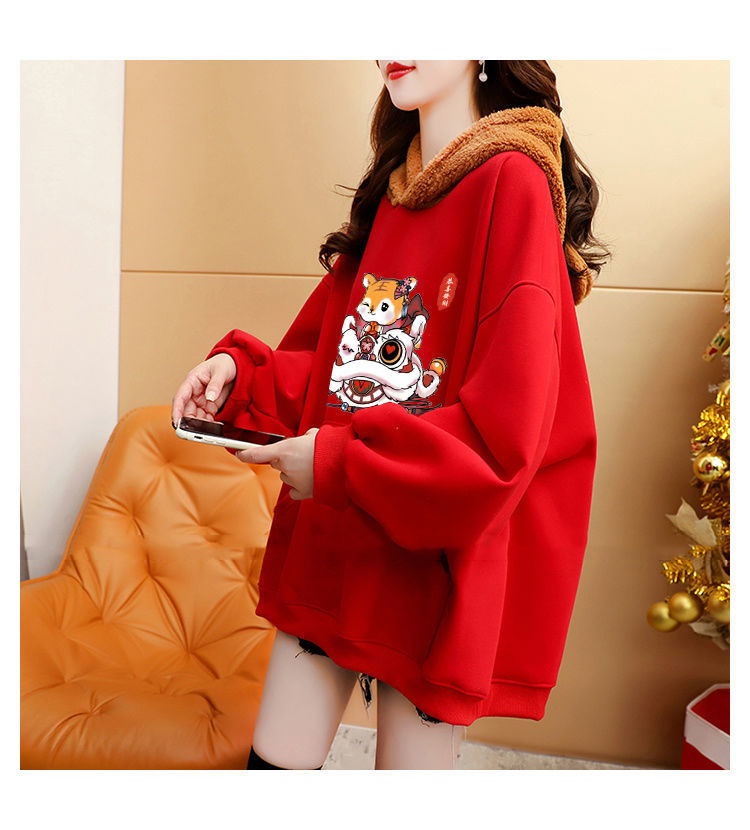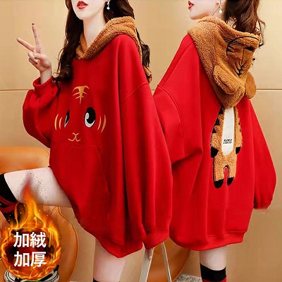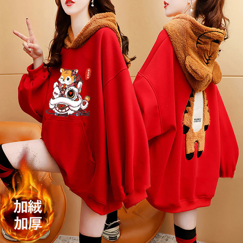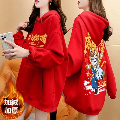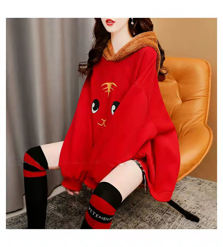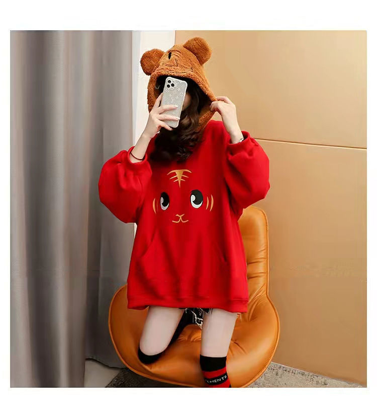 虎年本命年春節衛衣 加絨加厚款衛衣女 ins秋冬新款保暖連帽衫