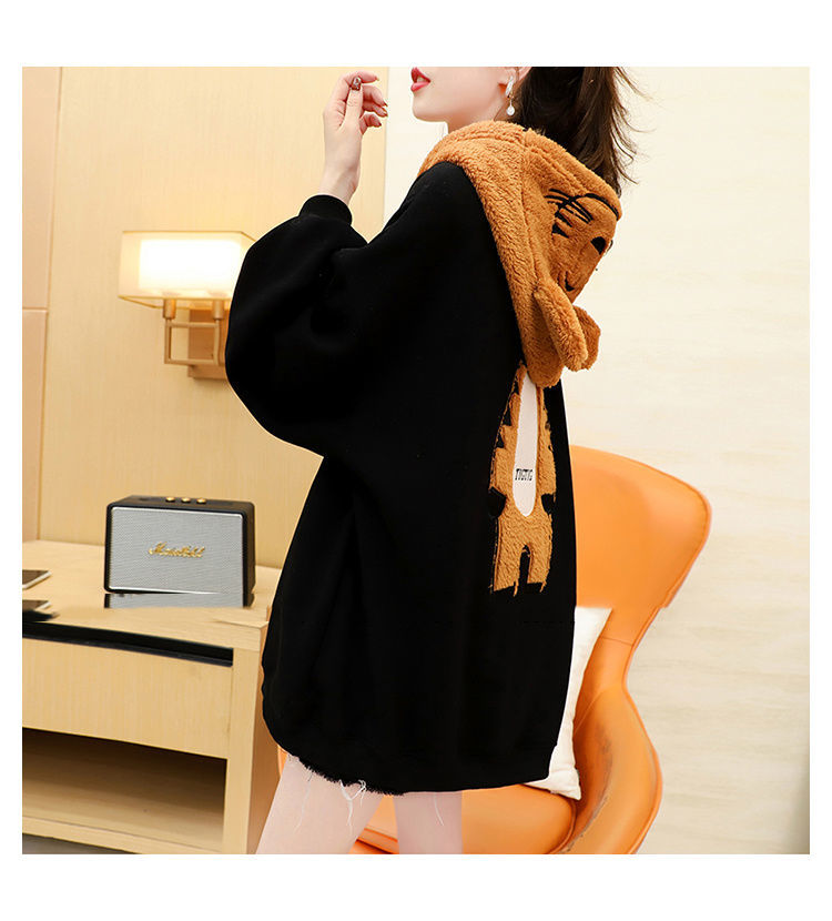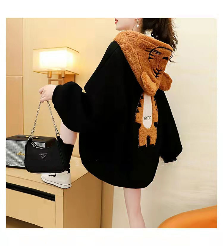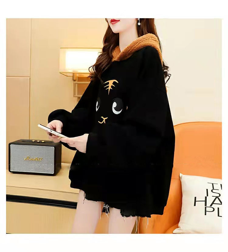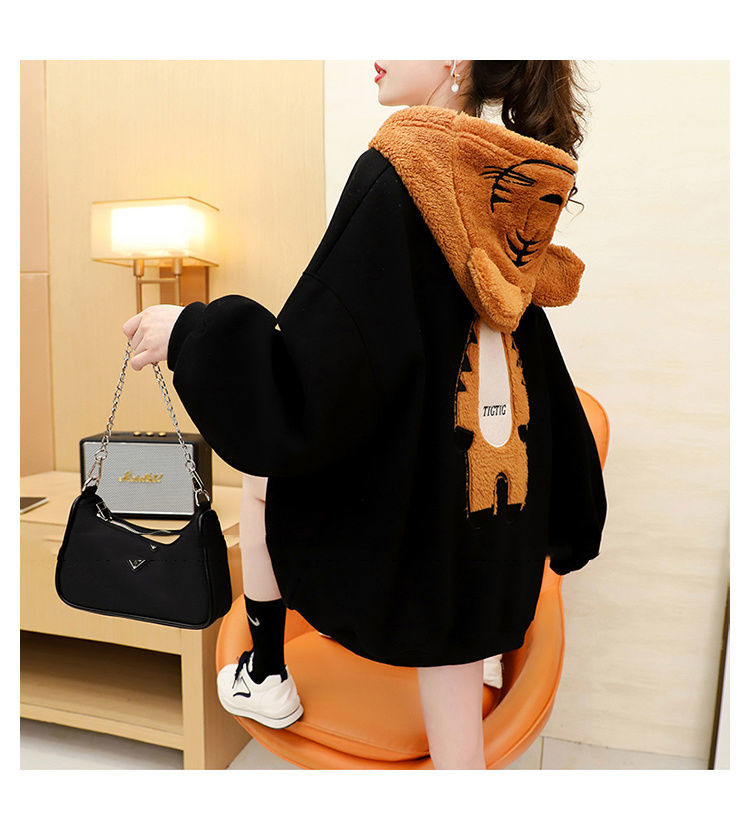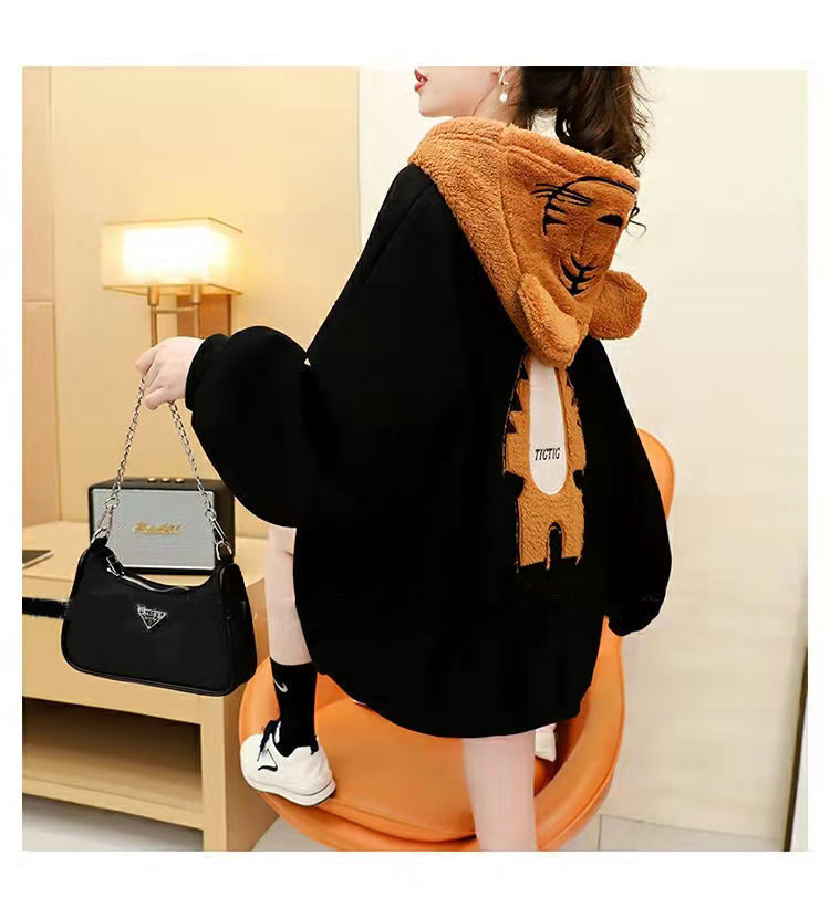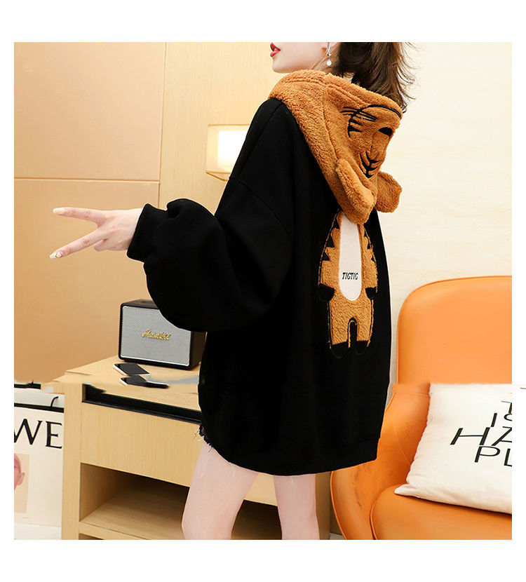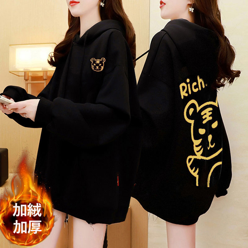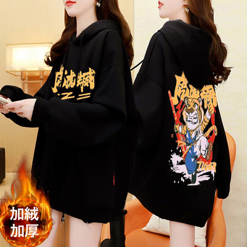 虎年本命年春節衛衣 加絨加厚款衛衣女 ins秋冬新款保暖連帽衫