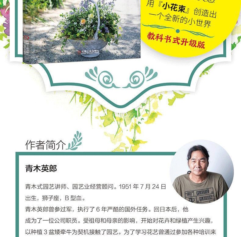 本書是繼《花草薈:青木式混栽技法入門》後,日本讀者期待的、建議出版的混栽教科書。青木英郎夢想能將混栽呈現出花藝作品的美感,於是自創了“青木聚集式混栽”,本書更系統、全面、易懂地介紹了這種使用帶根花苗打造組合盆栽的全新園藝技法。通過5種不同類型的作品——單個小花束、花環、花盆、壁掛花籃、帶根花束,告訴你更多的園藝方法,用更詳細的高清多角度步驟圖和示意圖,手把手教你使用“小花束”創造擁有細膩表現的作品。而當這些小花束長得“變形”時,通過調整和重組即可修正或誕生出新的作品。另外,書中還附大量青木英郎監督創作的充滿個性的作品,可供讀者參考欣賞。
