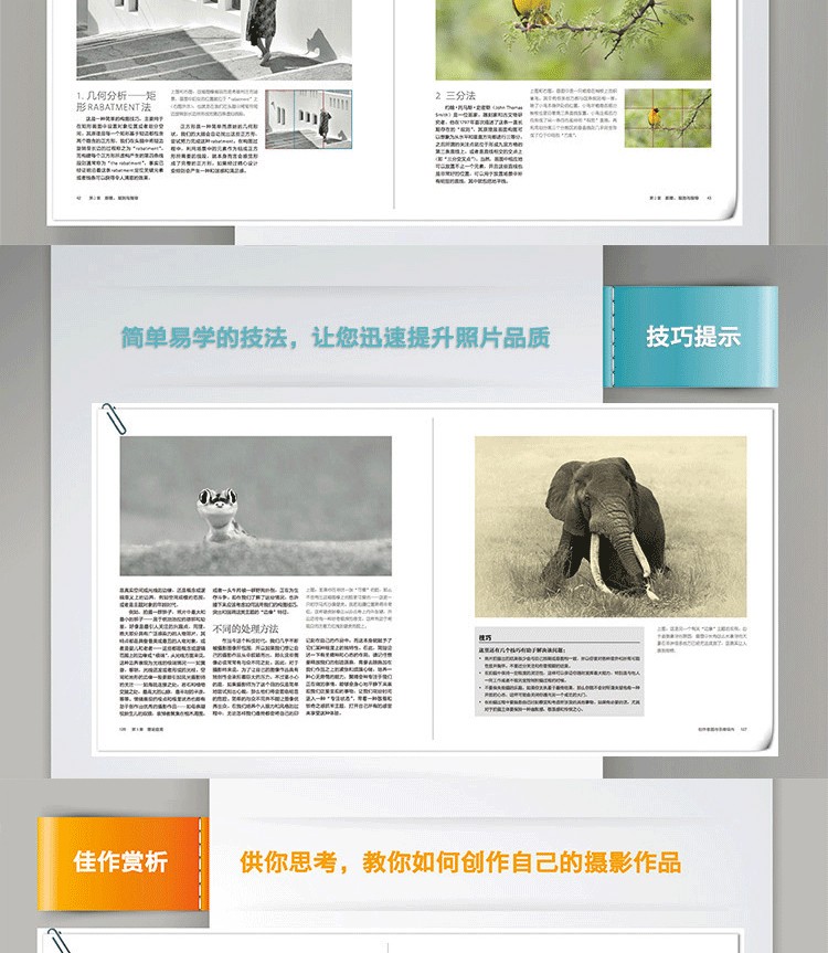 本書共7章,從聯想美、抽像美、對比美、均衡美、組照美、境界美、藝術美等方面進行了分析和論述。本書提出了許多實用的攝影美學方法,如錯雜抽象、視覺變異、視覺恆常、組照理論、格式塔理論、軟硬色、小秤砣、逆追隨、移情理論、考夫卡理論、走特別理論等,為攝影美學提供了新的內容,進一步豐富了攝影美學的技法庫。