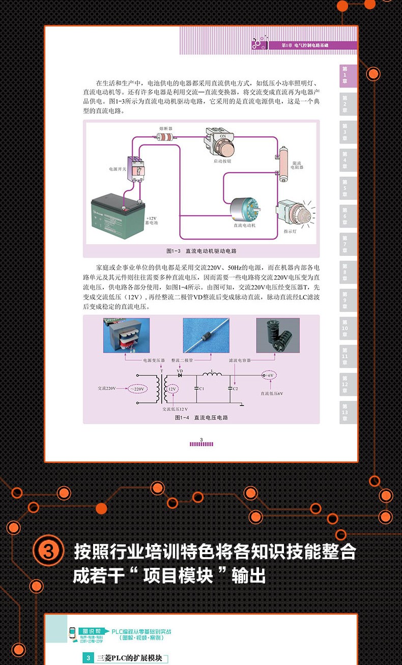 電子元器件+電工電路識圖佈線接線與維修+PLC編程從零基礎到實戰 彩圖大全3冊