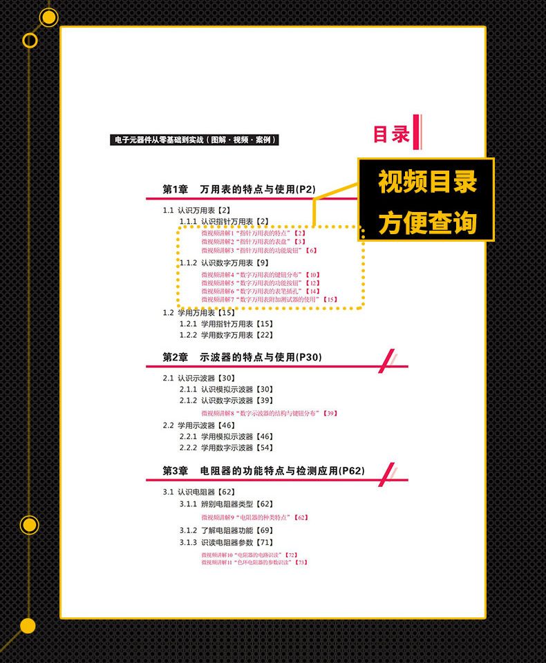 技能,特色就是通過學習本書和本書中的視頻,可以將電子元器件識別、檢測、焊接及應用的技能在短時間內全部掌握。