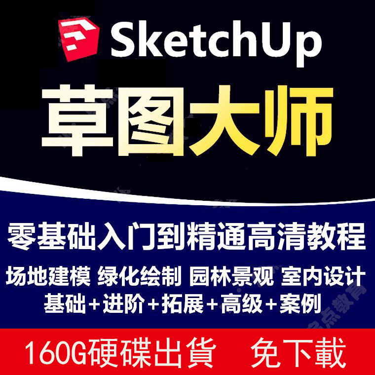 Sketchup 草圖大師全套視頻教程 景觀 室內 建築設計 Enscape建模渲染教程 SU設計園林景觀(160G 硬碟出貨 免下載 即插即看 手機電腦都能看)