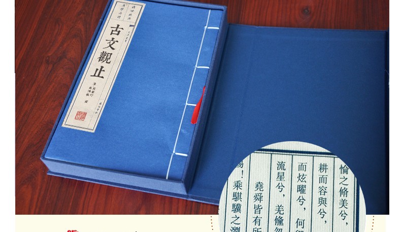 《古文觀止》是歷代散文總集。清代吳楚材、吳調侯編選,吳興祚審定。 《古文觀止(上下)》收錄了古代上起東週下至明末的散文222篇,雖比較一些選本所選篇目不算多,但它能重其所重,輕其所輕,故《古文觀止》問世至今300年來風行不衰,是清代以來流傳廣泛影響大的散文選本。 「觀止」二字出左傳,意思是:讀了這些盡美盡善的文章,別的文章就用不著去讀了。