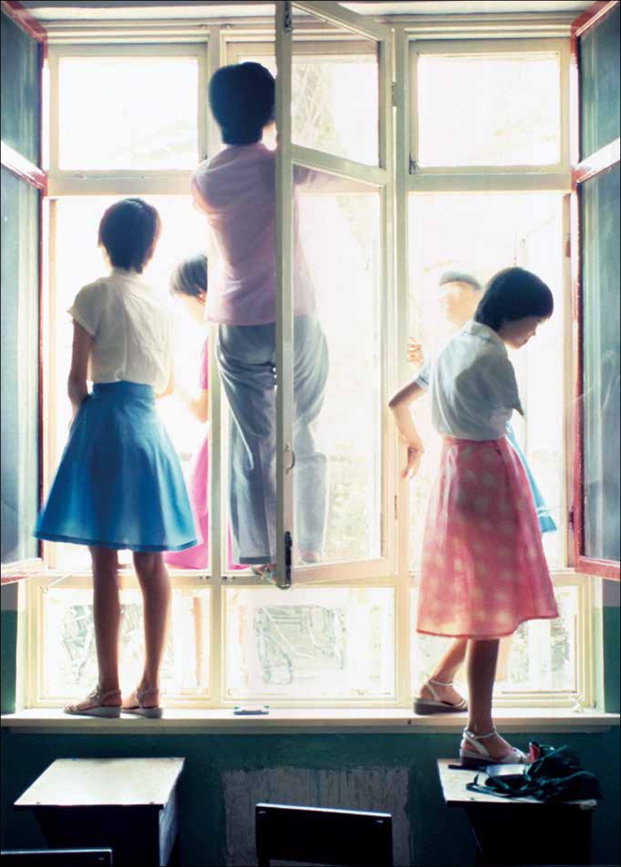 那個時候,任曙林照片中的北京一七一中學學生王琳和一個男生正在秘密地早戀。 *天傍晚,在空曠的教室裡,他們本來是坐在一起的,但門外的腳步聲讓他們瞬間分開,回到各自的座位。走進來的是攝影師任曙林,彼時的任曙林並不知道教室裡的這一對男生女生是戀人,他只感到教室里安靜得彷彿能聽到“夕陽移動的聲音”,他忽然覺得自己是一個“不該出現的第三者”,於是拍了一張照片後,任曙林便悄悄地離開了。多年以後,王琳在映畫廊看到這張照片,激動得痛哭:她和照片中的那個少年戀愛、一起留學,然後結婚,終分開……她對任曙林說,本來她以為青春已經不在了,但現在她發現原來青春還活在這些照片裡。