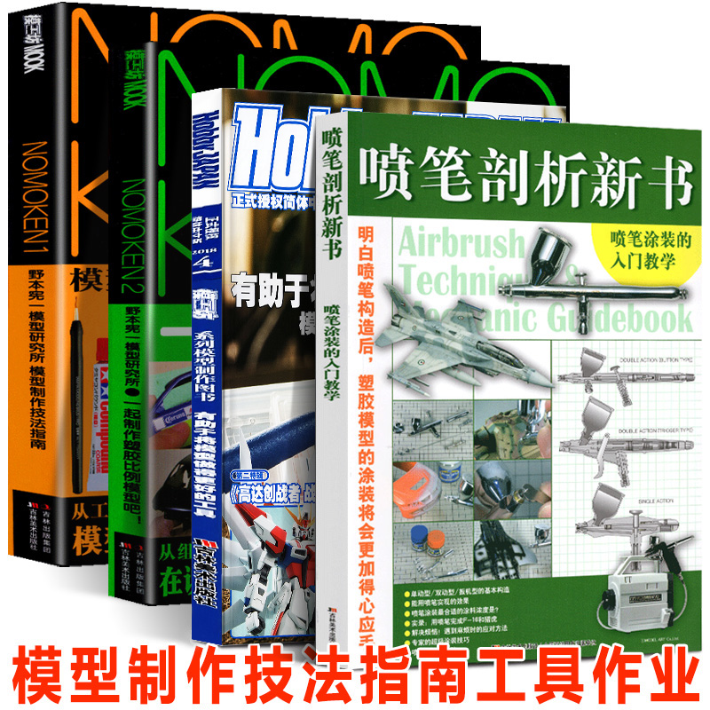 模型製作技法指南 NOMOKEN(1+2)+Hobby JAPAN 4+噴筆剖析新書(共4冊) 比例模型製作指南 工具和作業篇 高達改造塗裝技巧介紹教程