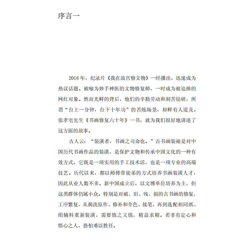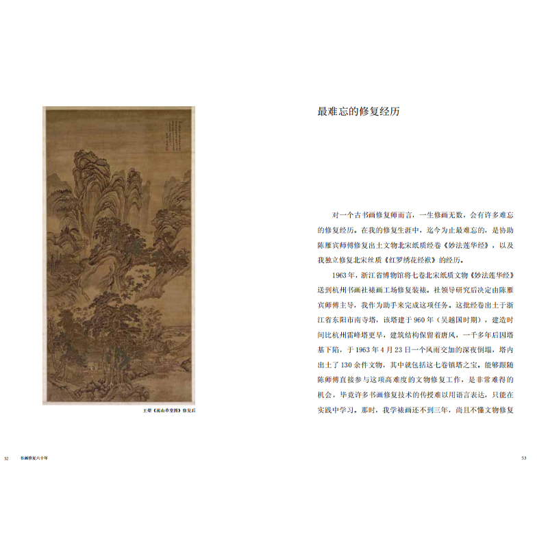 《書畫修復六十年》一書,講述張孝宅先生古書畫修復六十年生涯,從學藝開始到修復各類古書畫文物的故事。本書為中國美術學院張孝宅教授56年從事中國古代書畫修復經驗的首次集結,作者是國內少數願意公開私傳書畫修復技藝的專家,十分難得。
