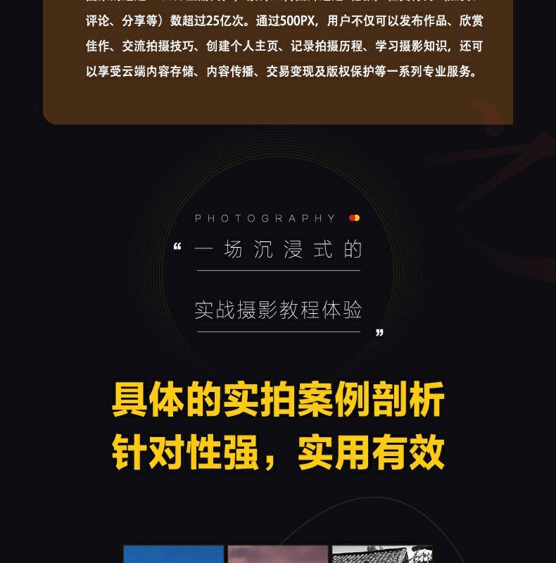 視覺中國 500px是 的專業攝影師社區,聚集了來自不同 的數万位創意攝影師與上千萬攝影愛好者。 500px社區集合各方優勢資源,編著本系列教程,以期為廣大攝影愛好者提供 好的服務。