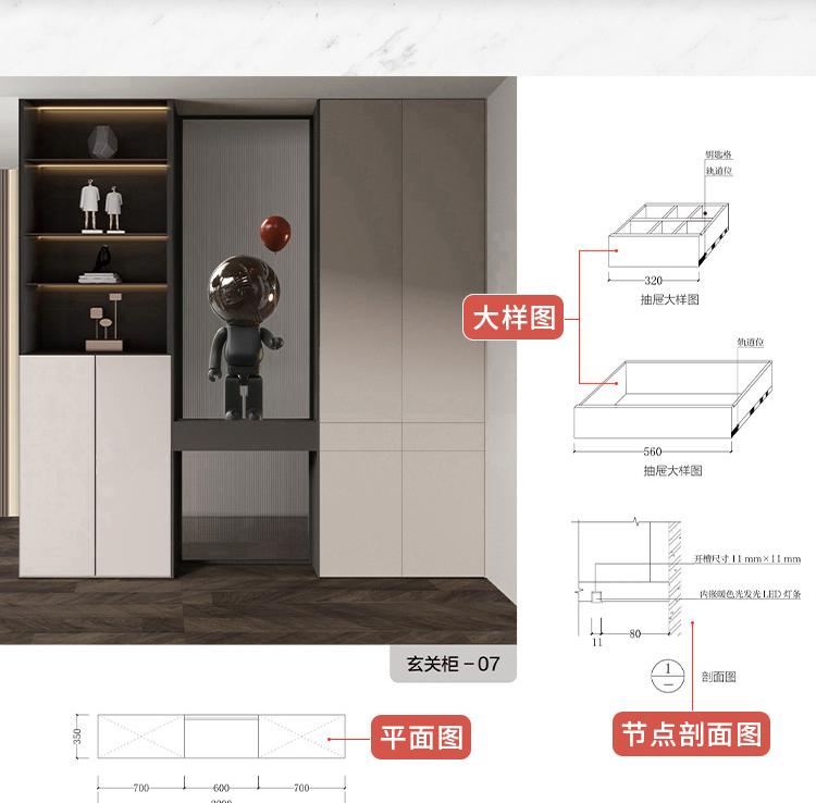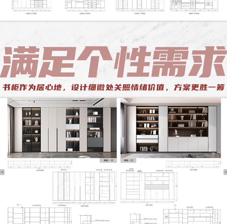 全屋訂製:櫃體尺寸與節點+家具設計CAD圖集(共2冊)