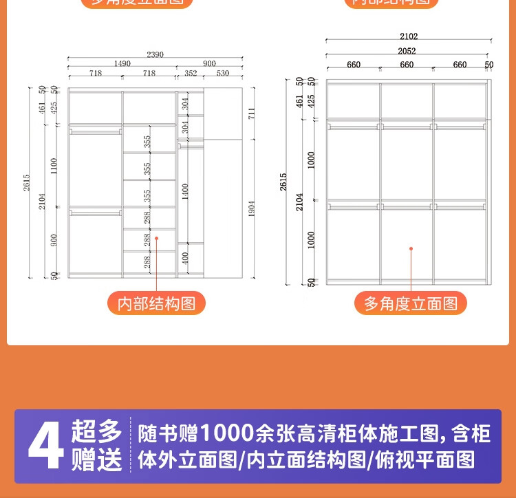 4. 隨書送1000餘張高清櫃體施工圖,手機隨時翻閱,物有所值。