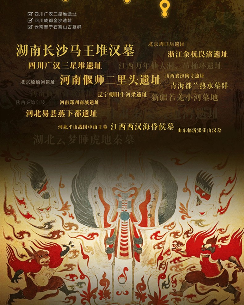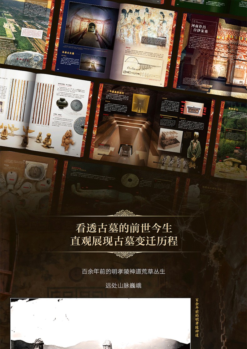 1. 縱貫3萬年中國陵墓遺址發展歷程。從舊石器時期北京周口店遺址至清西陵,包含7大歷史時期,縱貫3萬年歷史,系統講述123座陵墓遺址,清晰展現中國古墓完整發展脈絡。