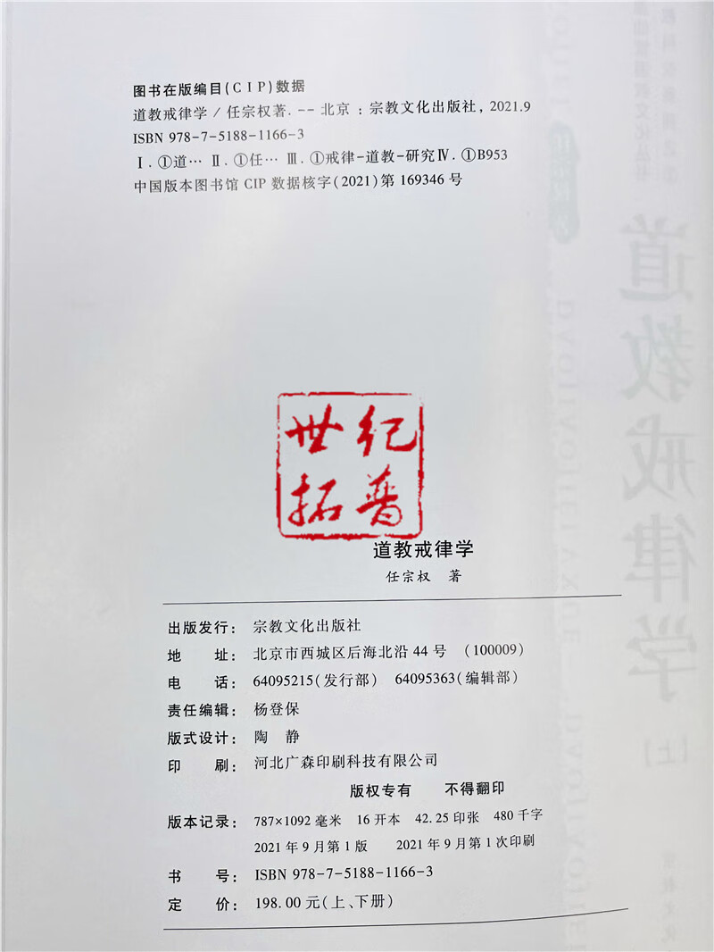 《道教戒律學》上下冊 任宗權 著 早期道教戒律的形成與發展 宋元道教戒學體系 明清道教戒律