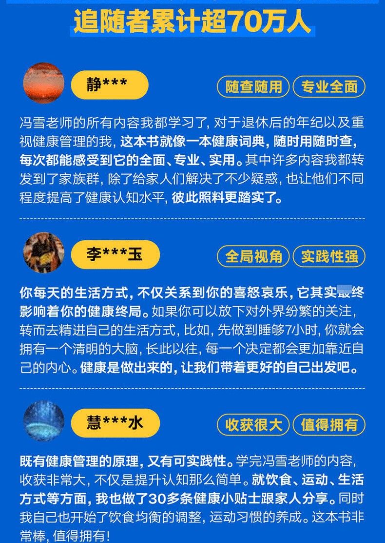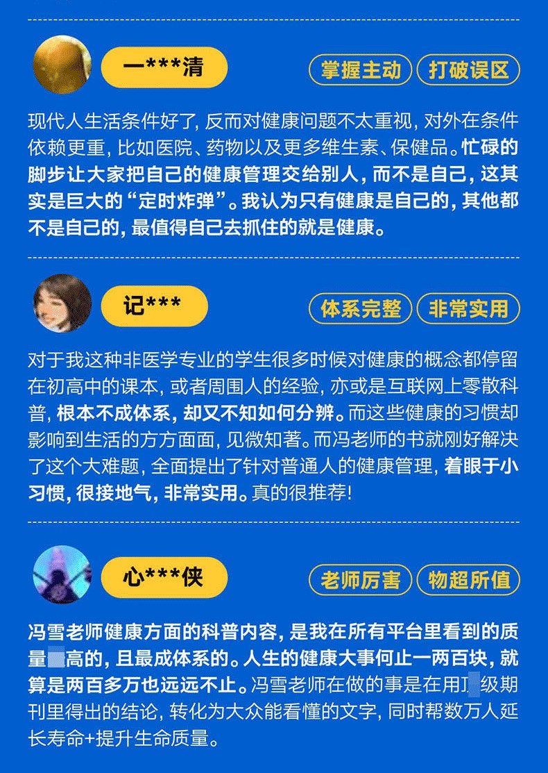 作者馮雪憑藉著紮實的醫學功底和豐富的臨床經驗,為一般家庭量身打造了一套完整的健康管理體系。這套體係有三個突出特點: