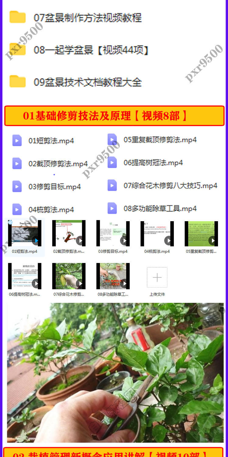 盆景種植花卉園藝師視頻教程盆栽園林苗圃栽培技術自學習16G優盤(盆景種植+花卉園藝)