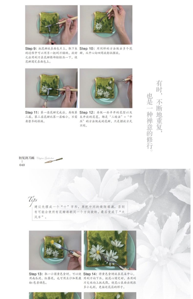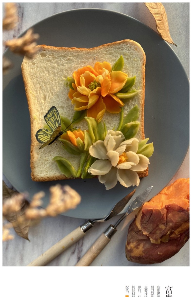 你是否見過麵包上開出鮮豔的花朵?你是否想過其貌不揚的土豆也能吃出花來?今天,就和小編一起,用最簡單的食材,吃最有儀式感的早餐。食物和刮刀似乎可以“碰撞”出無窮的可能,最簡單的食材,在她的手下也能變成一份賞心悅目的藝術品。不僅僅是食物,刮刀技法在繪畫、雕塑、蛋糕裱花等行業都迅速興起,成為藝術行業新寵。刮刀雕塑畫使用油畫刮刀和雕塑膏,採用獨特的技法,創作出生動的浮雕作品。題材以花卉為主,也可做山水鳥獸,質感粗糙復古,色調高級,具有超強的藝術感染力。