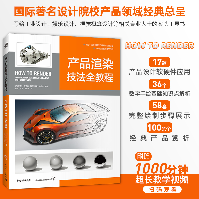 產品渲染技法全教程+產品概念手繪教程 2冊 工業設計 模型設計 視覺設計(掃碼觀看1000分鐘教學視頻)