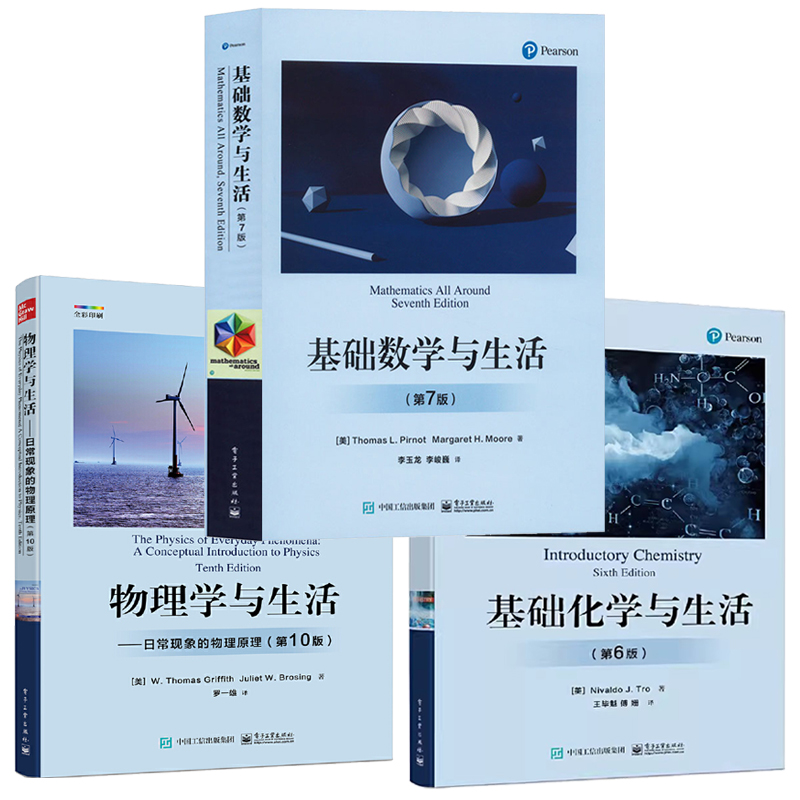 美國數理化通識教材:《物理學與生活 》+《基礎化學與生活》+《基礎數學與生活》(共3冊)